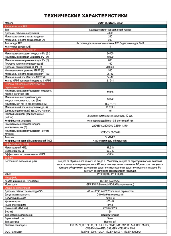 Гибридный инвертор 6,2 кВт 3 шт